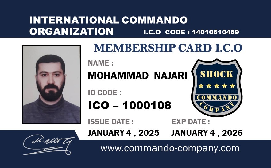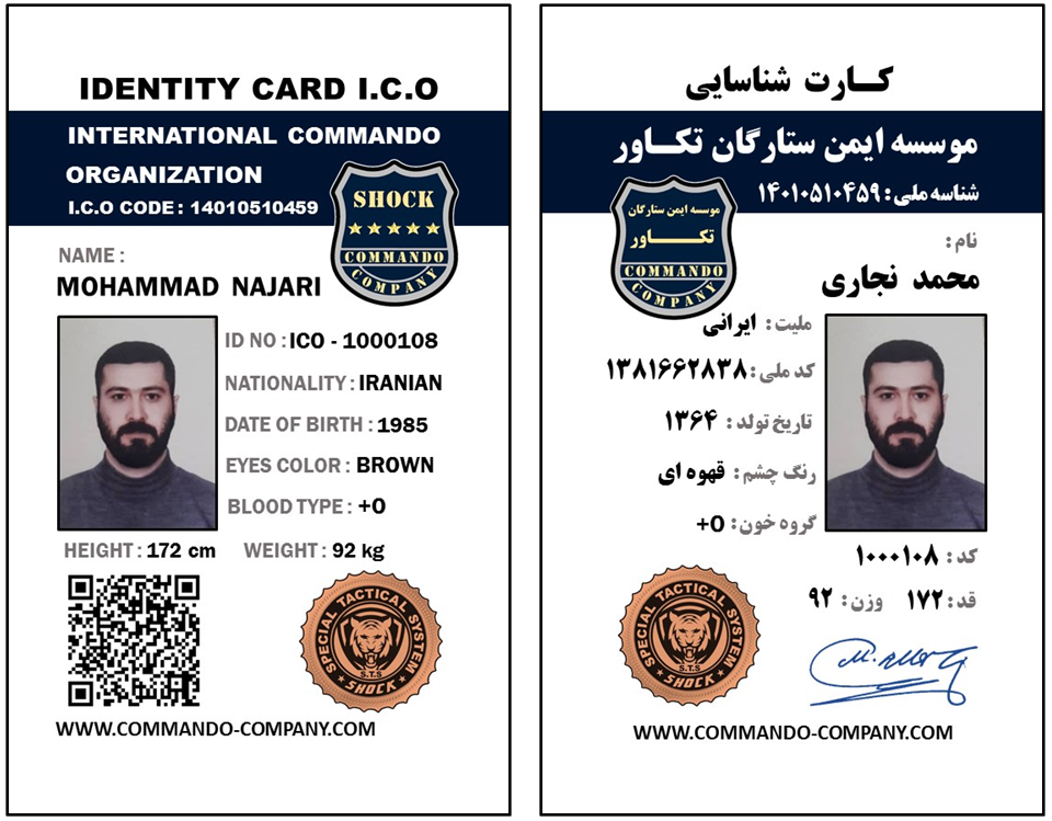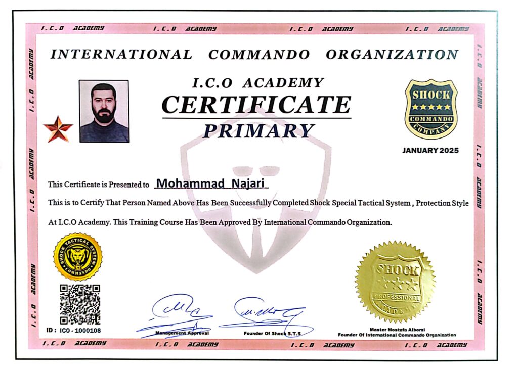 آقای محمد نجاری Mr. Mohammad Najari کارت عضویت کارت شناسایی لول C Identity Card Of C Level گواهینامه مقدماتی حفاظت Certificate of Primary Protection