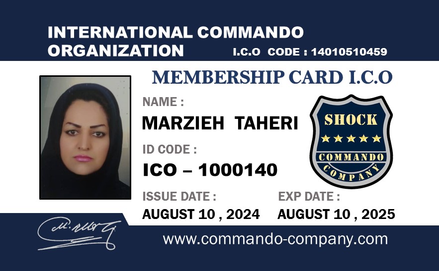 خانم مرضیه طاهری Ms. Marzieh Taheri کارت عضویت Membership Card گواهینامه سمینار خلع سلاح مقدماتی Certificate of Primary Disarm Seminar