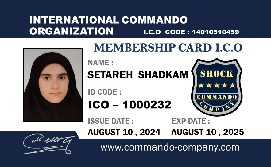 خانم ستاره شادکام Ms. Setareh Shadkam کارت عضویت Membership Card گواهینامه سمینار خلع سلاح مقدماتی Certificate of Primary Disarm Seminar